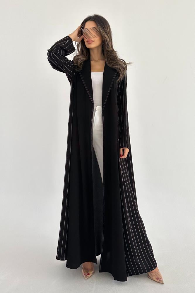 تألقي بإطلالة ملكية مع عبايه بياقة كريب كلوش . تمتاز بقماش الكريب الفاخر الذي ينسدل بسلاسة ليعزز من جمال القصة نص كلوش، مما يمنحك مظهراً راقياً وحركة انسيابية في كل خطوة. أما الياقة المصممة بعناية، لتضفي لمسة من التميز والفخامة، مما يجعل عباية بياقه كريب كلوش خياراً مثالياً للمناسبات الرسمية والإطلالات العصرية الراقية.