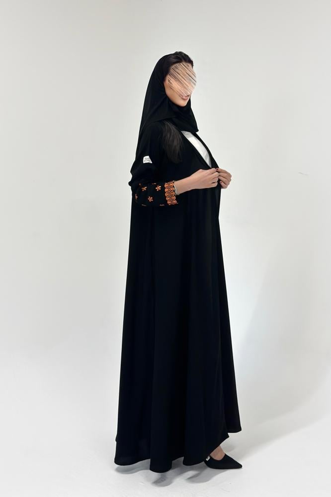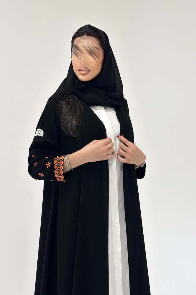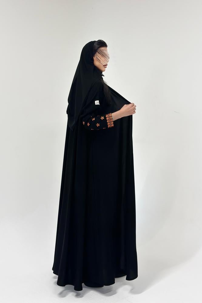 الأسود الكلاسيكي يلتقي بالفخامة – عباية مطرزة من خُمرة