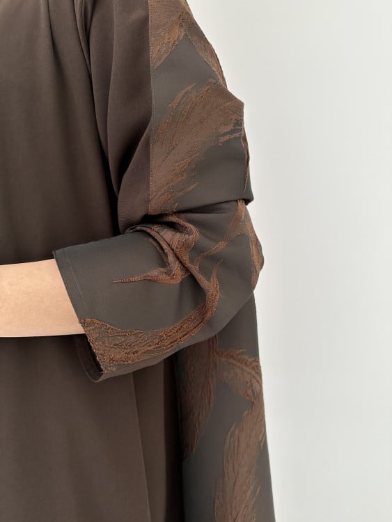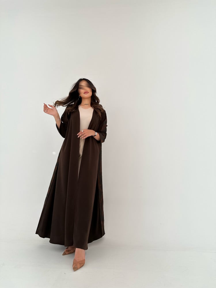 عباية بني كريب تفته مصممة خصيصًا لتكون رفيقتكِ في الأيام الصيفية. مصنوعة من قماش الكريب الخفيف والناعم، تمنحكِ إطلالة عصرية. تأتي بتصميم التفته الذي يضفي عليها طابعًا من الأنوثة والجمال، بينما اللون البني يمنحها طابعًا كلاسيكيًا يناسب جميع الأوقات. عباية بني كريب صيفي مع تفته هي الخيار المثالي لإطلالة صيفية مميزة وأنيقة.