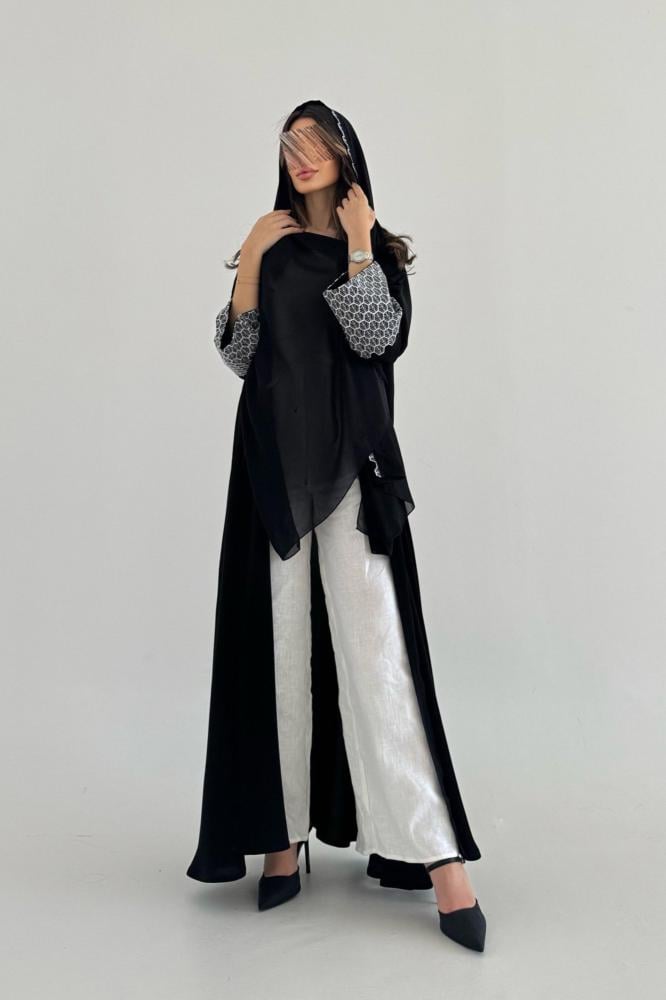احصلي على إطلالة أنيقة وأنثوية مع عباية مطرزة كريب ملكي مصنوعة من أجود أنواع الكريب لتضمن لك الراحة والأناقة طوال اليوم، تتميز بتصميم أنيق يتضمن تطريز الأكمام باللون الأبيض الكلاسيكي، مما يجعلها قطعة مثالية لأي مناسبة. ارتديها في الأمسيات الرسمية أو في النزهات اليومية، وتألقي بأناقة لا مثيل لها.