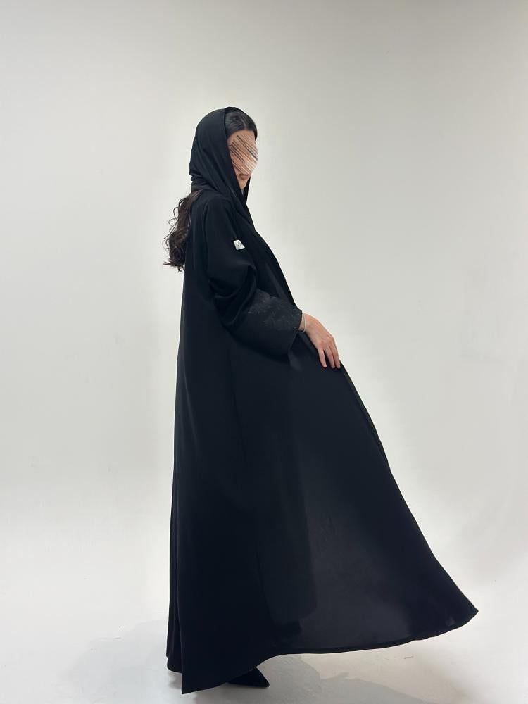 تتميّز بقصة مريحة ، وتتفرد بأكمام مزينة بنقش هندي دقيق يضفي على العباية لمسة ناعمة .