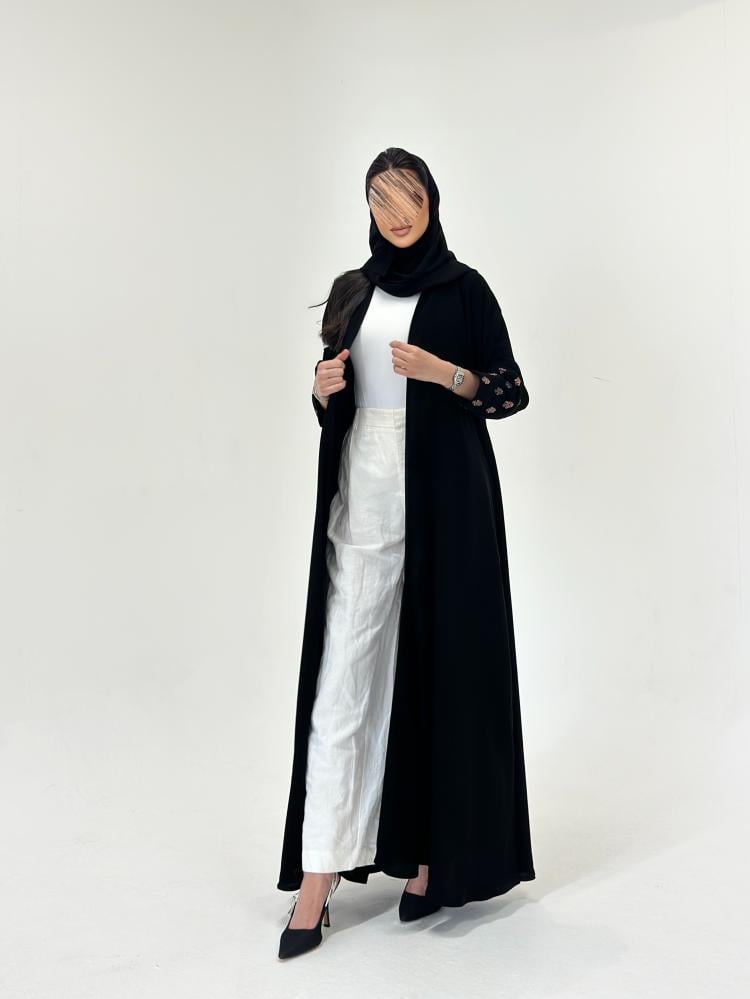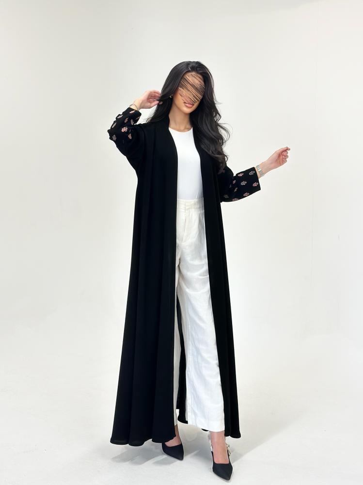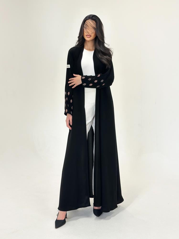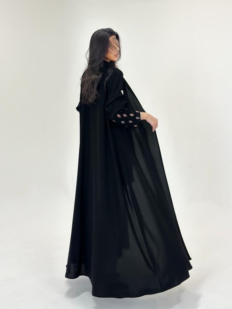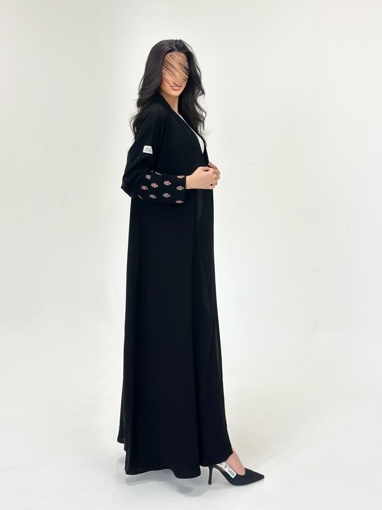 عباية كريب ملكي بتطريز على الأكمام – تفرّدي بذوق يعكس أناقتك
