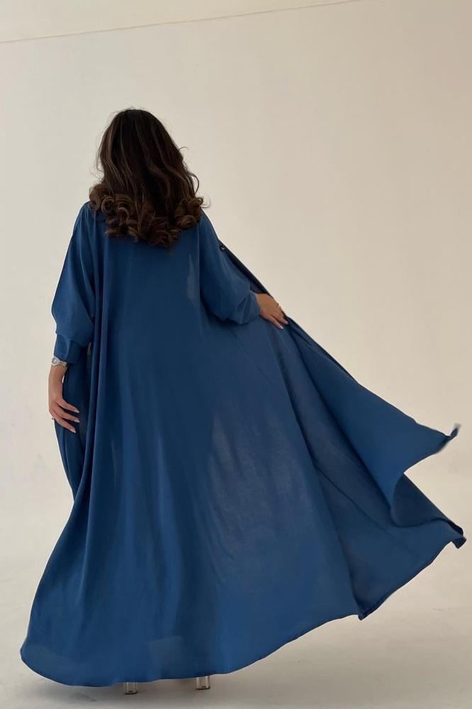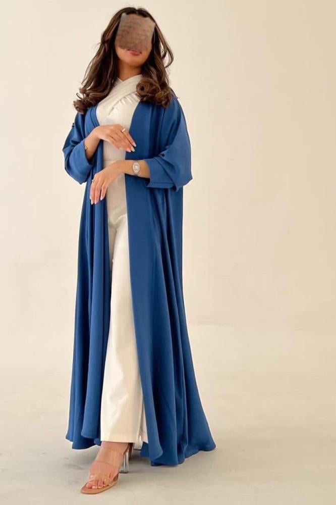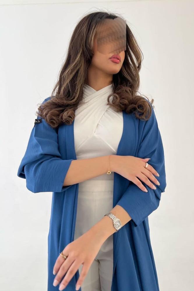 - لون العباية: أزرق فاتح + كريمي + اسود