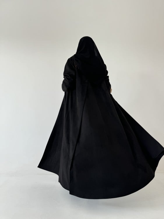 - عباية شامواه بياقة ربع كلوش يُفضل غسلها يدويًا بماء بارد للحفاظ على جودتها وألوانها.